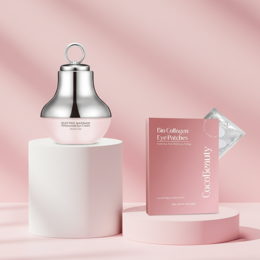 Designed specifically for fatigued, puffy under-eyes. This set pairs cooling hydrogel patches with a silky eye massage cream to visibly reduce puffiness, smooth fine lines, and revive radiance—without heaviness or residue.