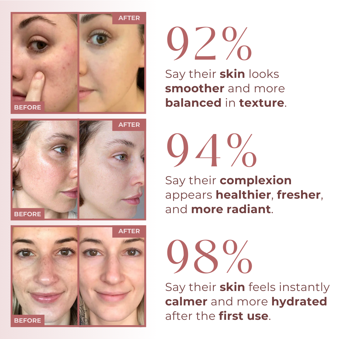 Formulated with hydrating, calming and renewing ingredients such as Tiger grass, aloe vera, niacinamide and grape seed oil.
